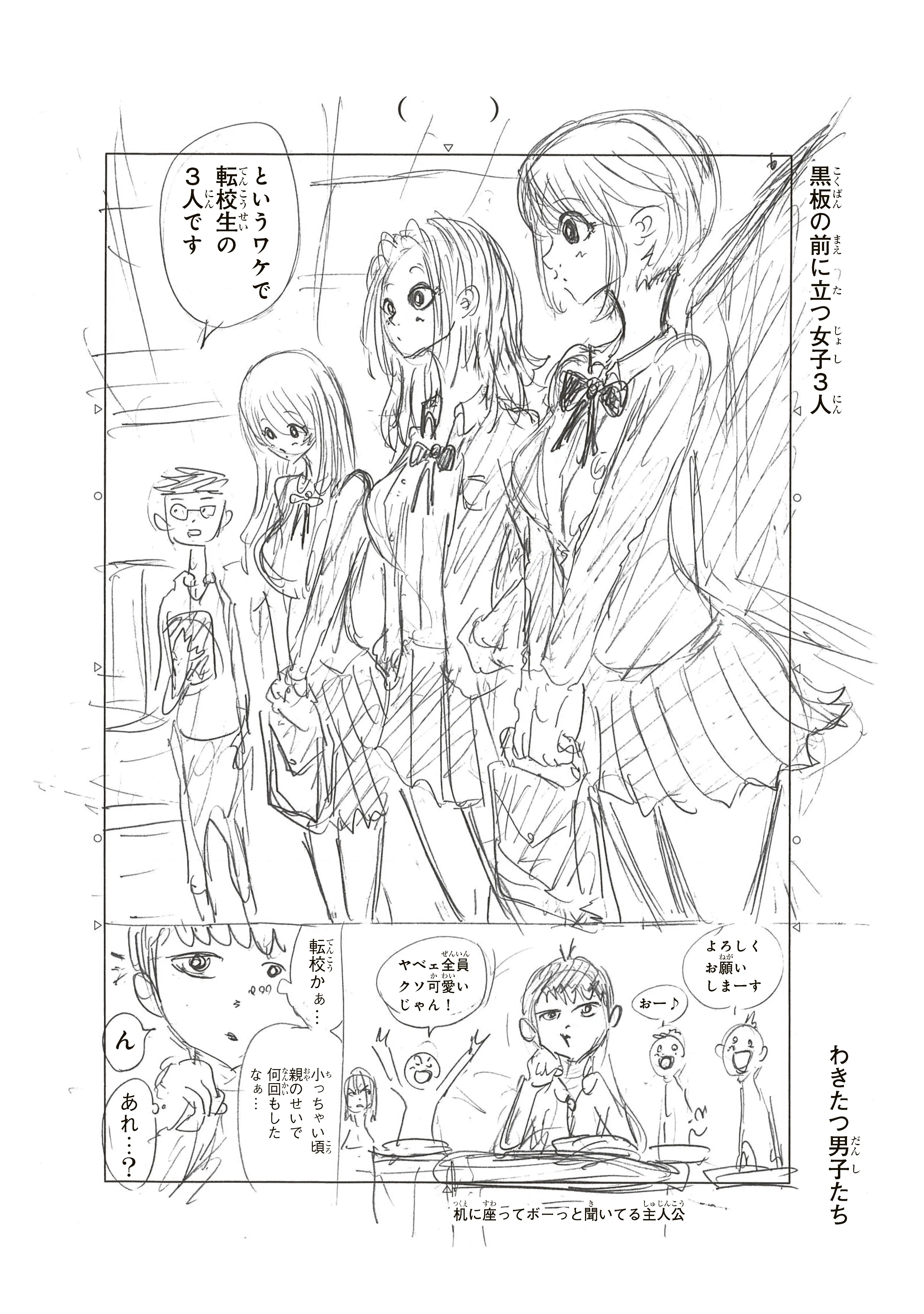 アナログ原稿B4サイズの漫画原稿用紙を使用して、黒インクか墨汁で描いてください。セリフは濃いめの鉛筆で書き、絵にかかるセリフは、原稿の上にトレーシングペーパーを貼り、その上に鉛筆で書いてください。